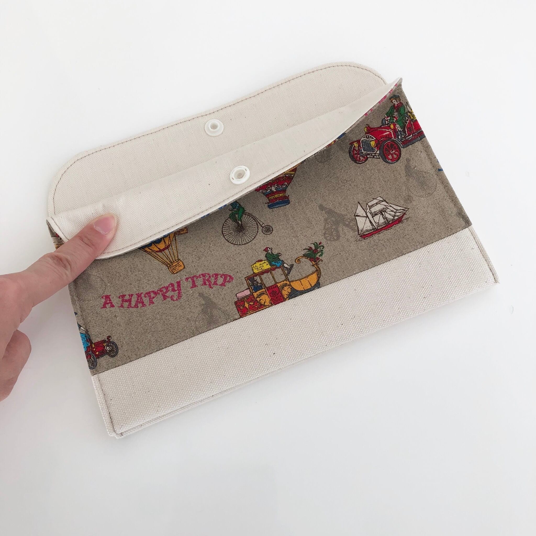 中は3つのポケットに分かれており、通帳・母子手帳・カード・ハンカチ類やレシートなども入れられます。