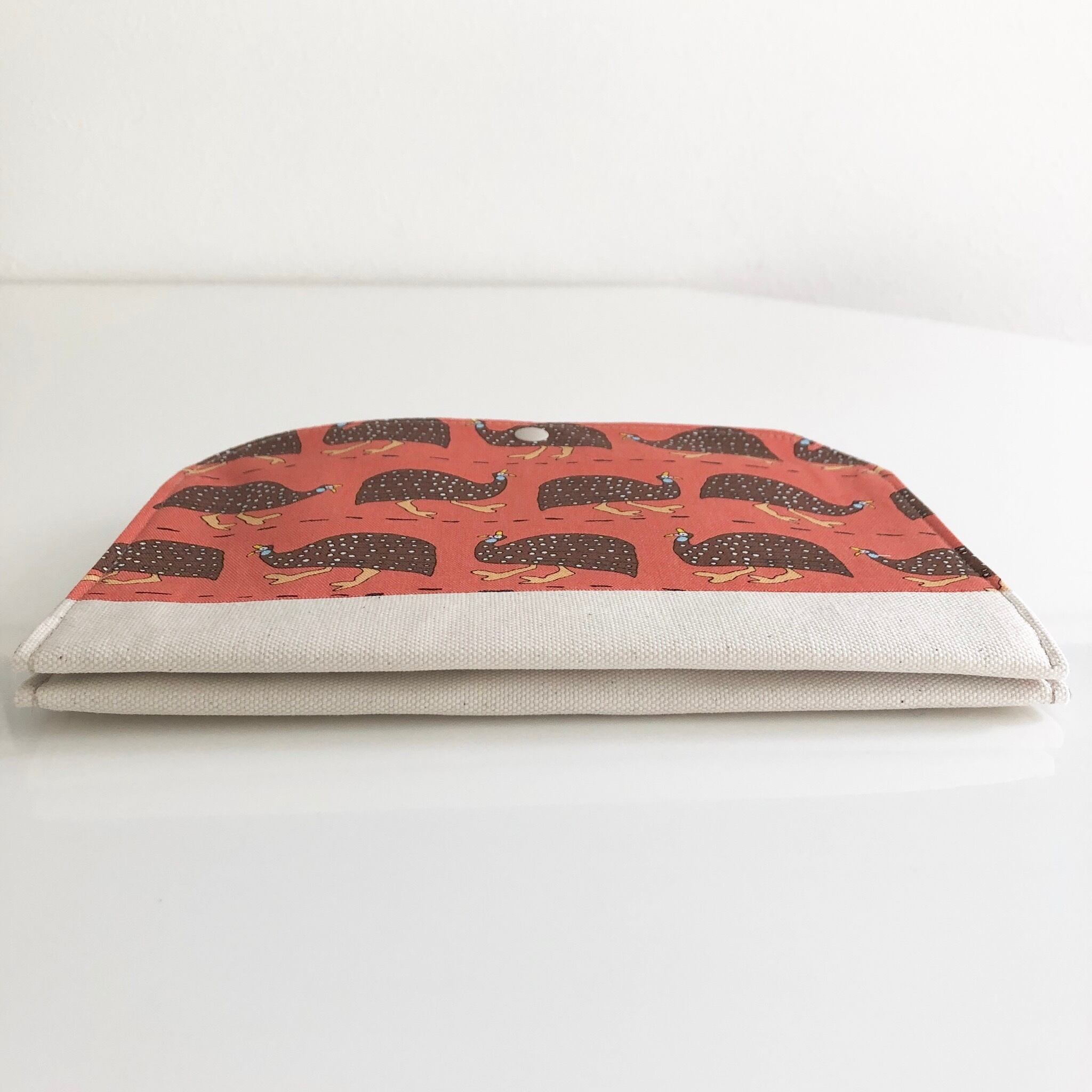 ⚫︎外側ポケットには約12㎝×21㎝までの手帳などが収まりボタンが閉まります。