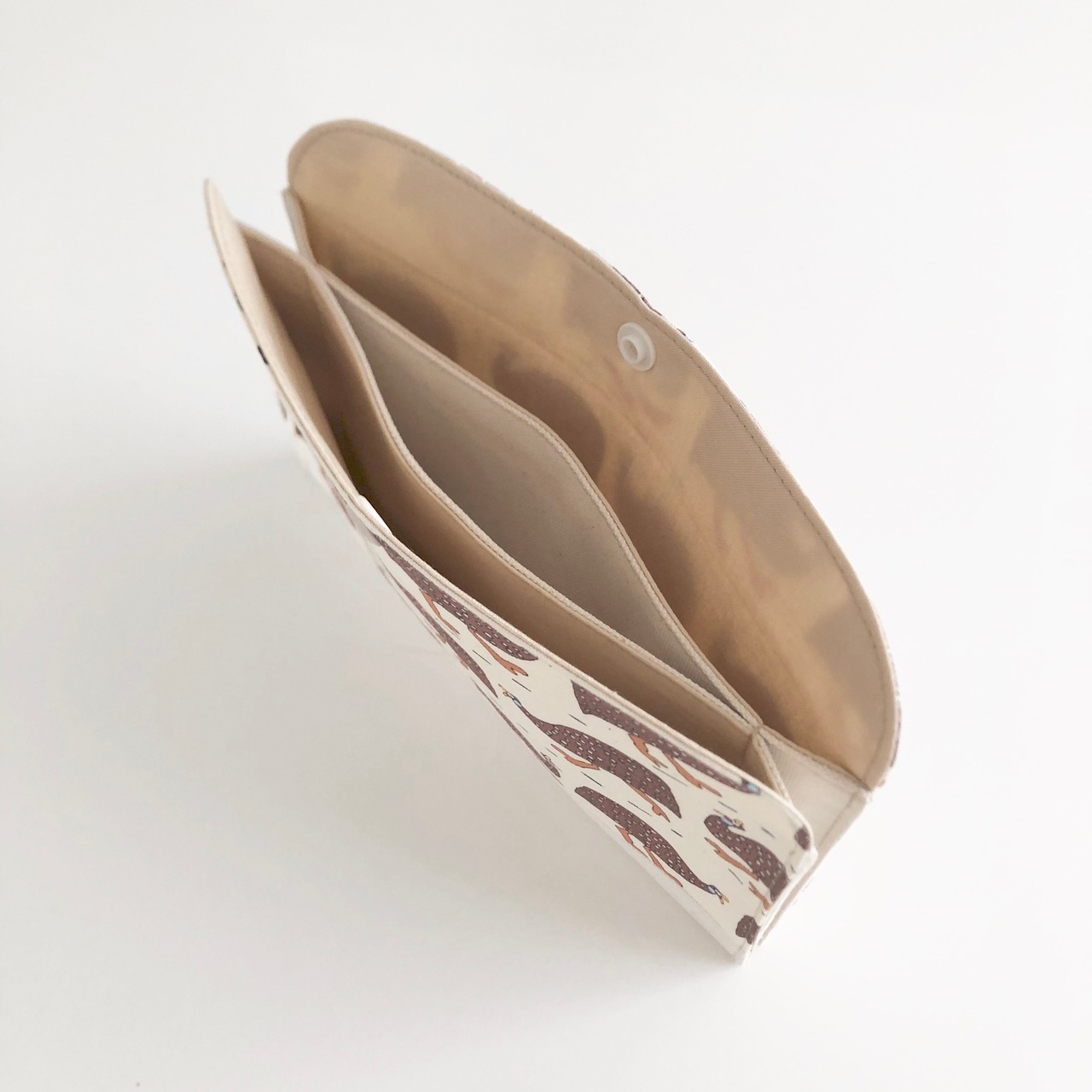 中は3つのポケットに分かれており、通帳・母子手帳・カード・ハンカチ類やレシートなども入れられます。