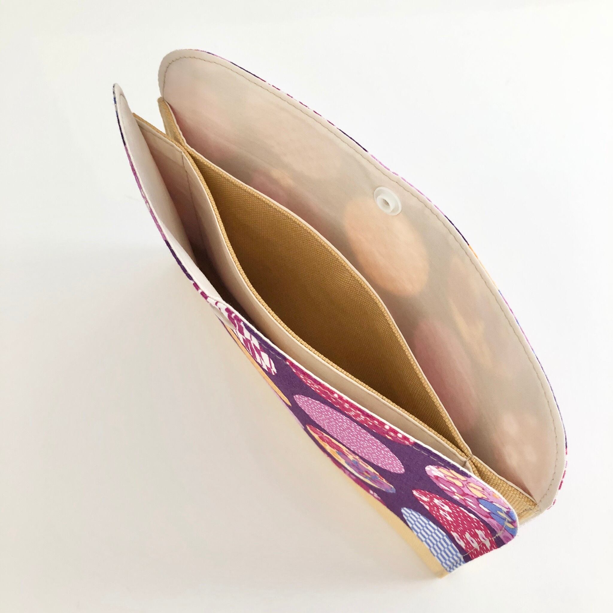 中は3つのポケットに分かれており、通帳・母子手帳・カード・ハンカチ類やレシートなども入れられます。