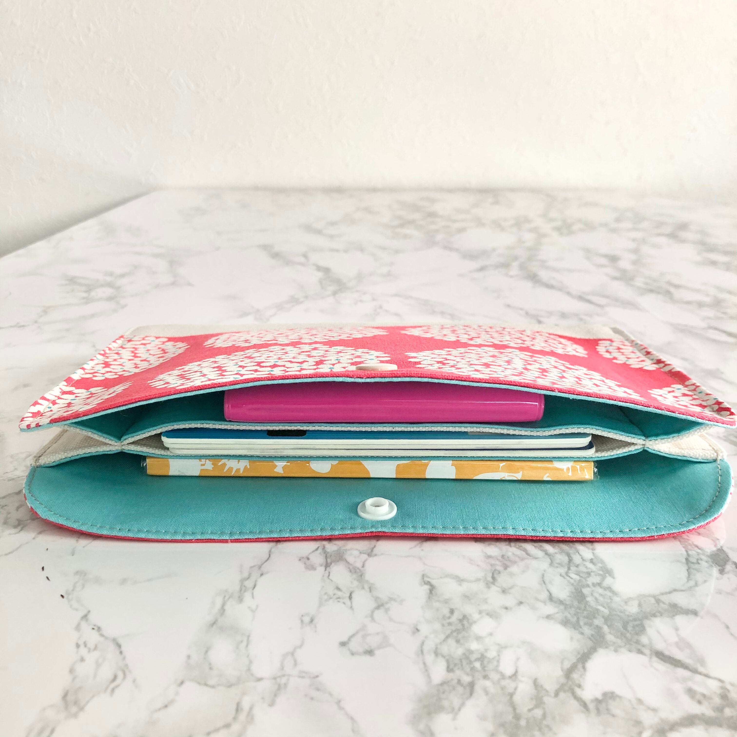 ⚫︎外側ポケットには約14.5㎝×21㎝までの手帳などが収まりボタンが閉まります。