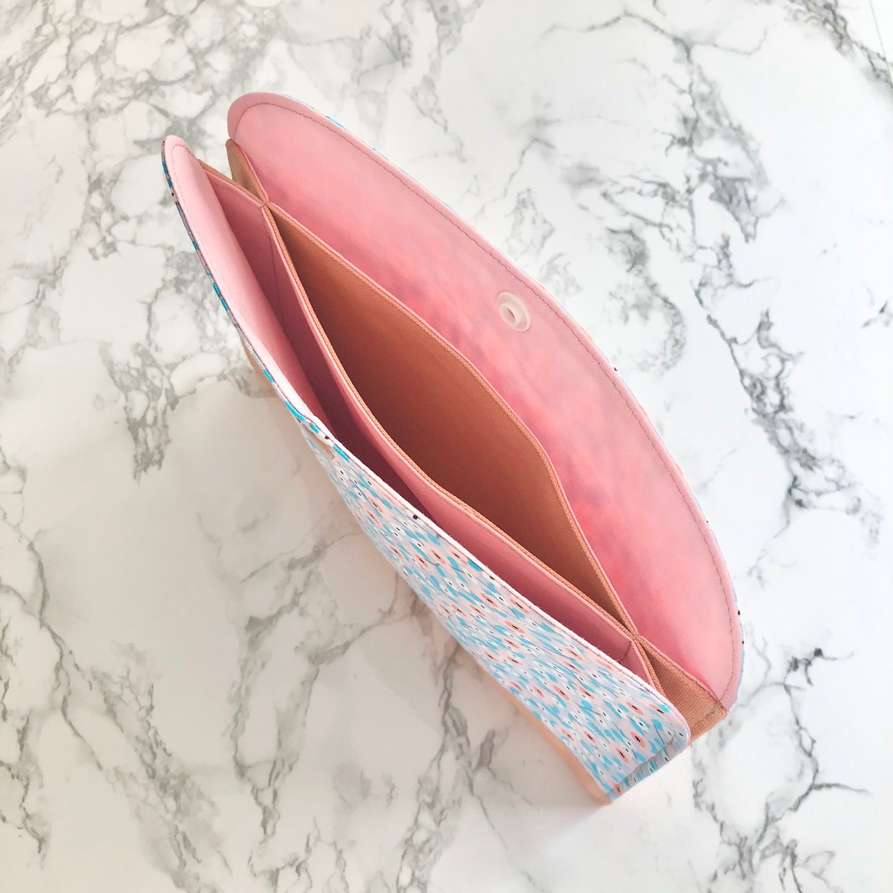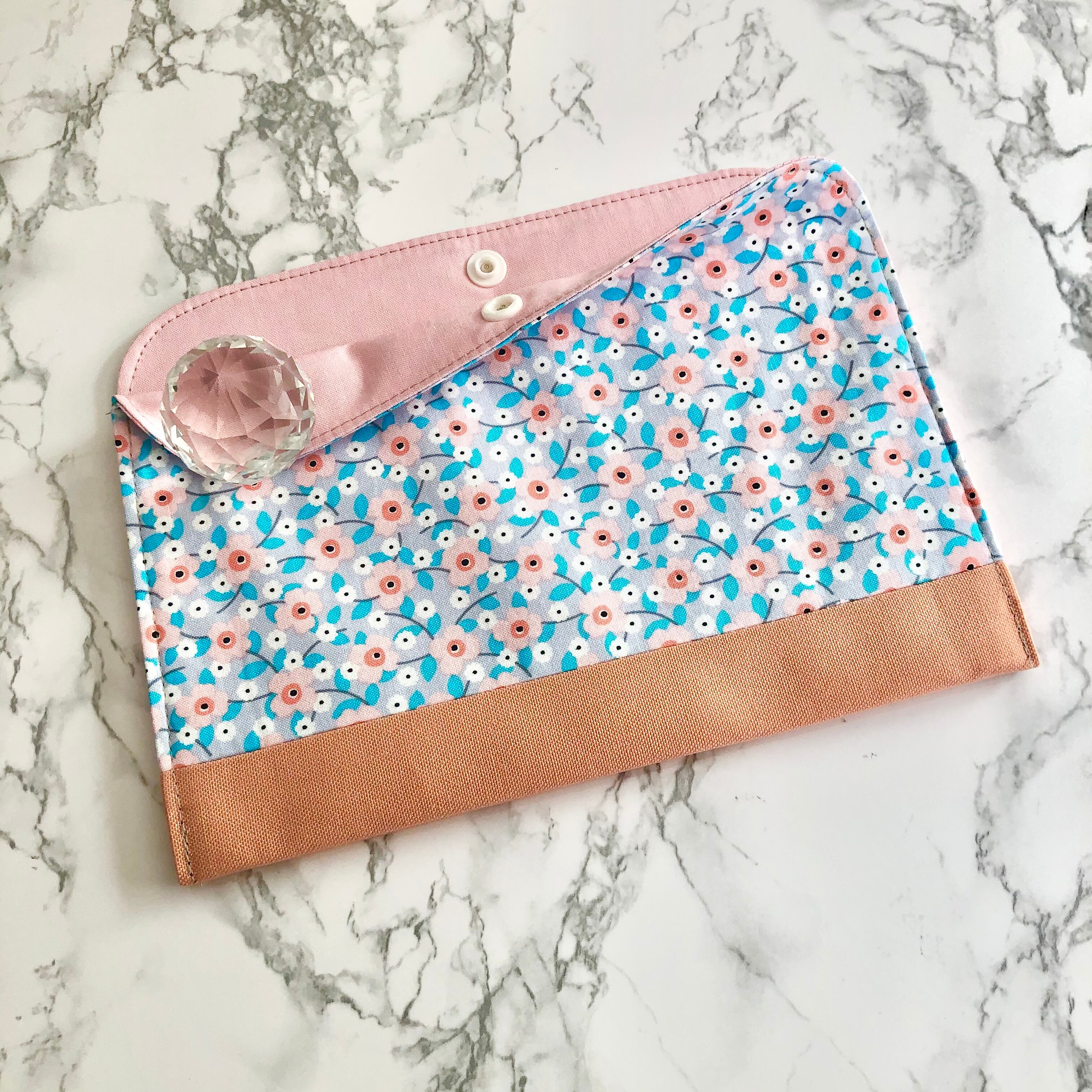 ⚫︎ 表は花柄とサーモンピンクのツートン、内側もピンクの生地で製作しました。