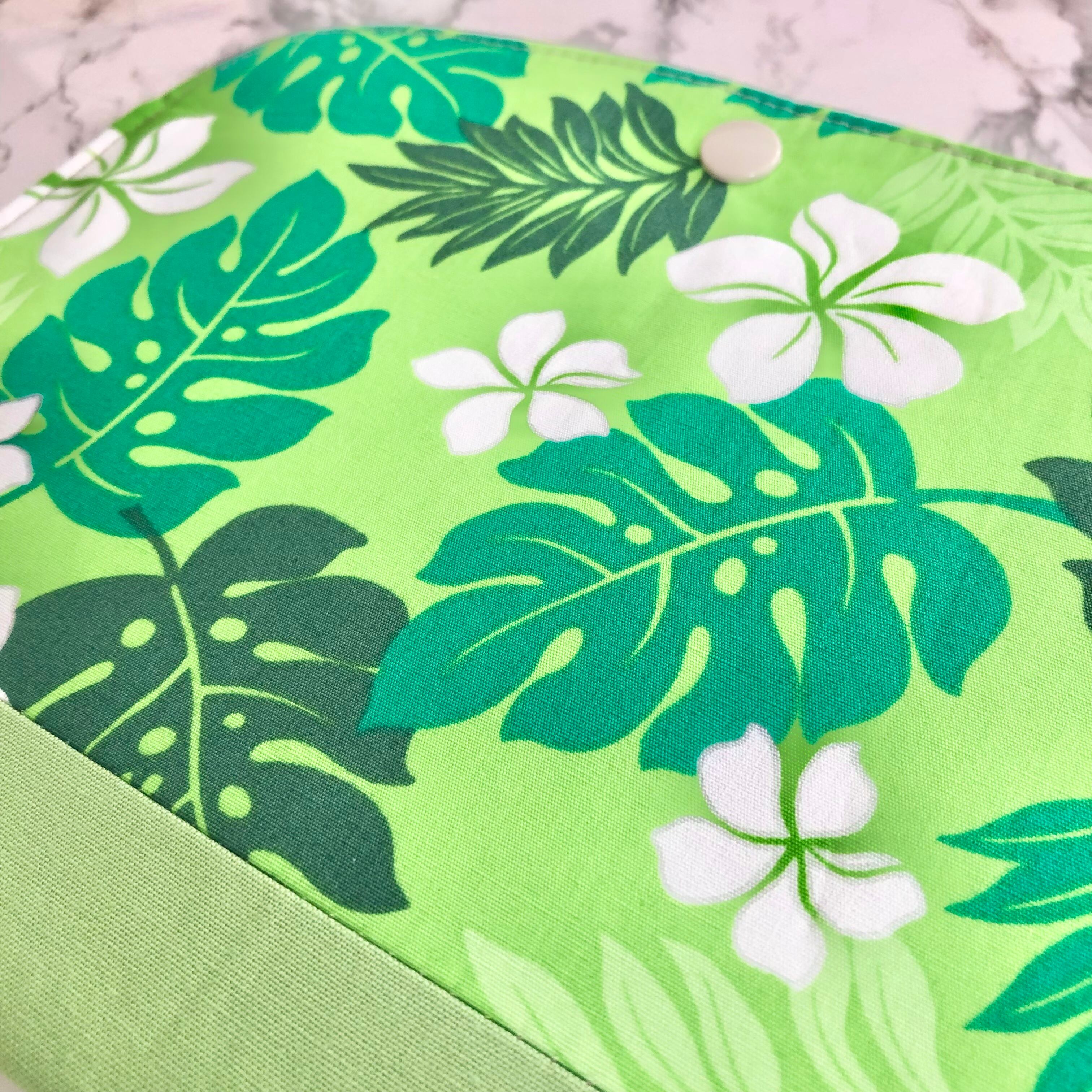 ⚫︎ 表はリーフ柄とグリーンのツートン、内側はオフホワイト生地で製作しました。